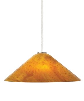DESCRIPTION Fused and slumped plate glass shade, warm with color and pattern, highlighted with metal detail and suspended from a round canopy. Glass disc diffuser provides a glare free wash of light. Black, satin nickel and white finish options highlighted with satin nickel detail; antique bronze highlighted with antique bronze detail. Includes 120 volt, 100 watt A19 medium base lamp or 18 watt GX24Q-2 base triple tube compact fluorescent lamp (electronic ballast included). Fixture is provided with six feet of field-cuttable cable. Incandescent version dimmable with standard incandescent dimmer. INSTALLATION This product can mount to either a 4" square electrical box with round plaster ring or an octagon electrical box. Incandescent version dimmable with a standard incandescent dimmer. COLOR Beach amber, sand, surf white. FINISH Black, antique bronze, satin nickel, white. Black, satin nickel and white canopy options include satin nickel detail; antique bronze includes antique